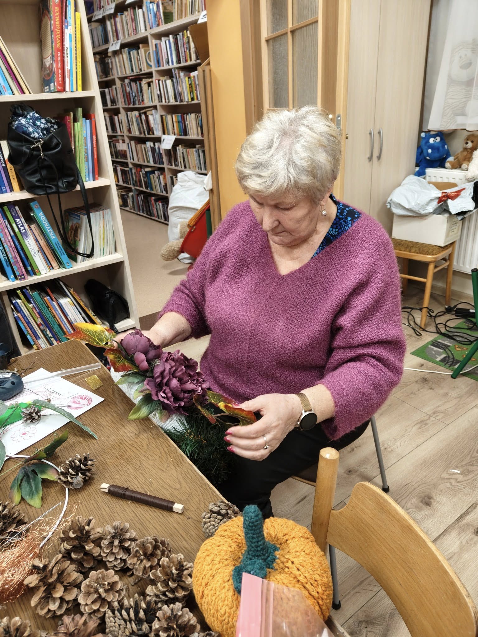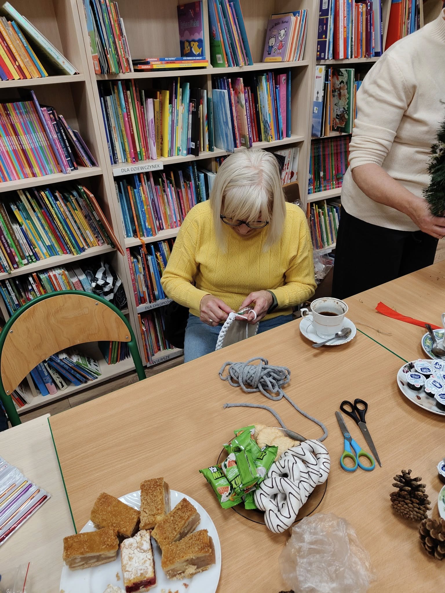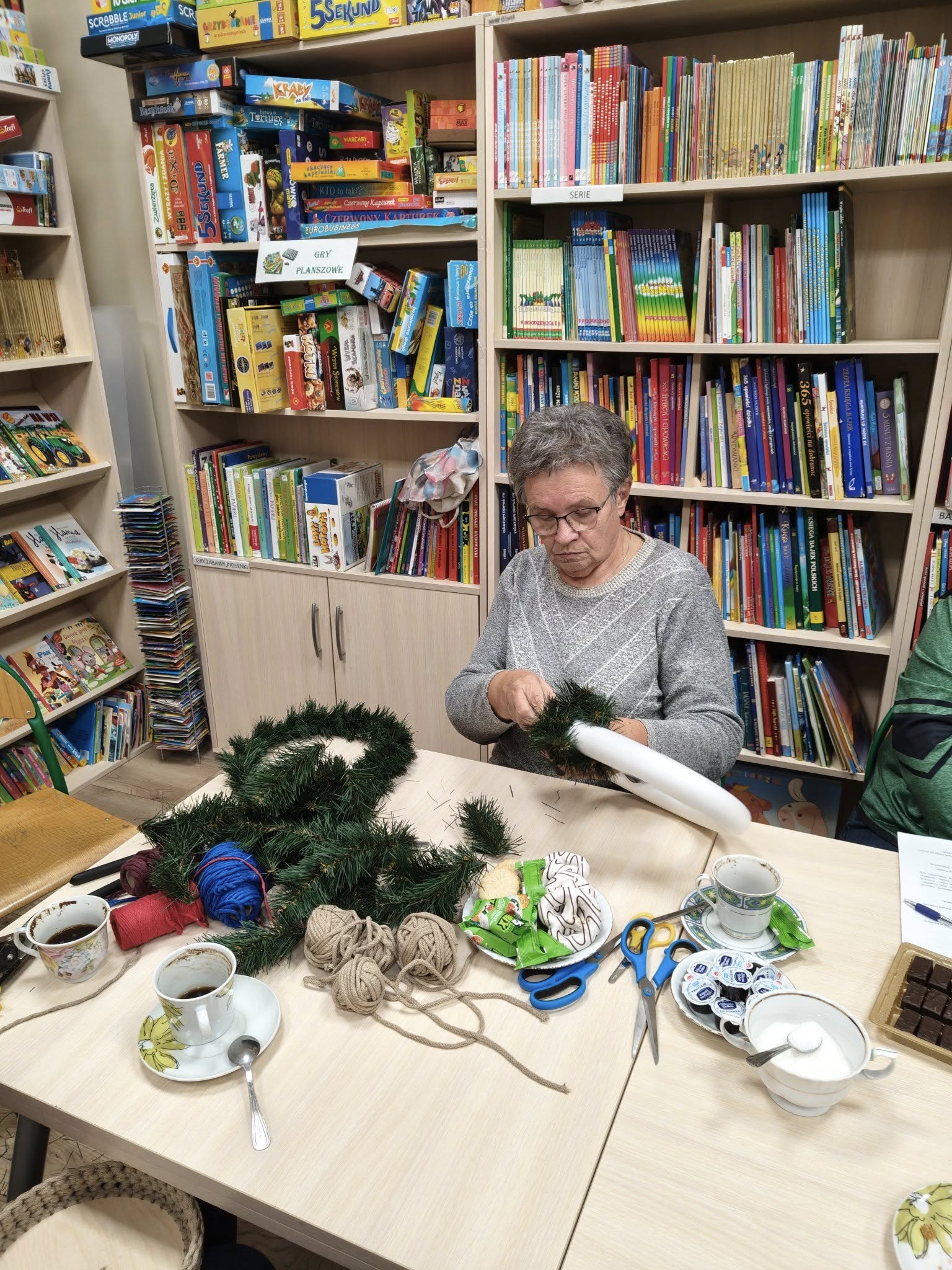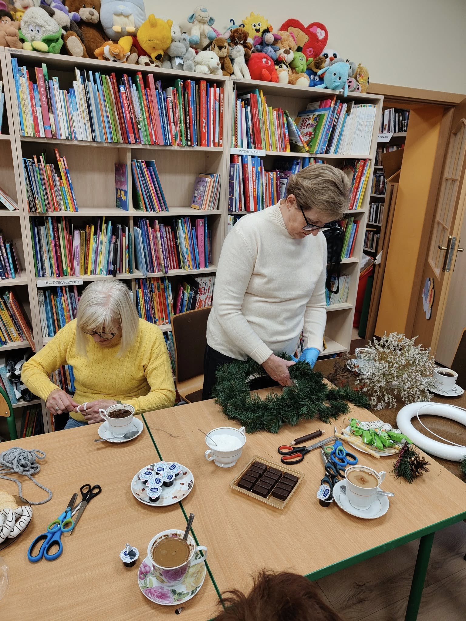 W dniu dzisiejszym nasze utalentowane panie na Kółku Robótek Ręcznych wykonywały już ozdoby świąteczne. Panie łączyły klasyczne techniki z nowoczesnymi pomysłami - szydełkowe koszyki, stroiki czy też wianki. Jak zwykle na naszych spotkaniach atmosfera robi największe wrażenie. Panie czują się jak u siebie, słychać gwar rozmów, śmiech, czuć aromat kawy,a i coś słodkiego również zawsze się znajdzie. Widać, że dla naszych pań rękodzieło to nie tylko hobby, ale to sposób na dzielenie się radością i możliwością obdarowania nią innych. Wszystkie ozdoby, które zostały dziś wykonane będzie można zakupić na tegorocznej wystawie stołów bożonarodzeniowych.