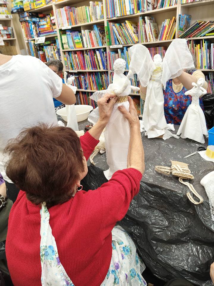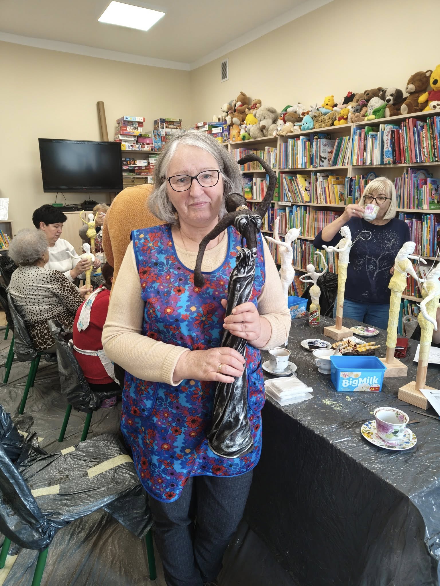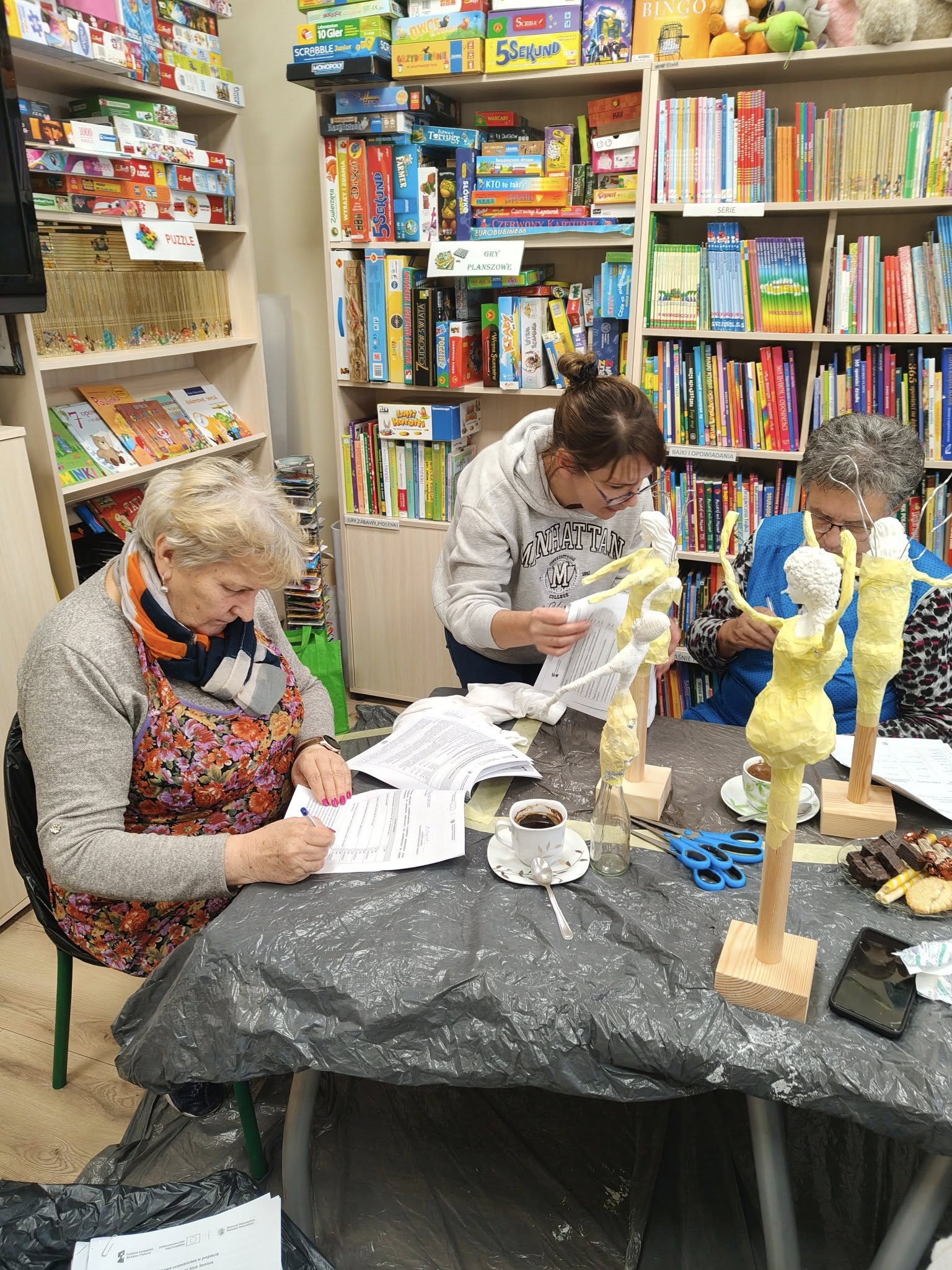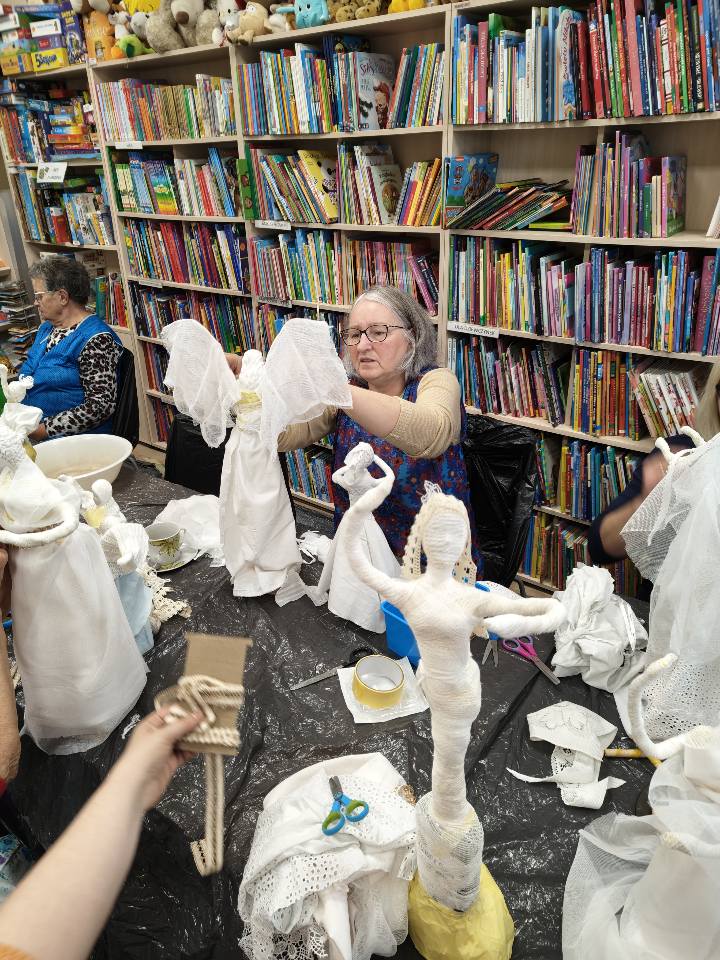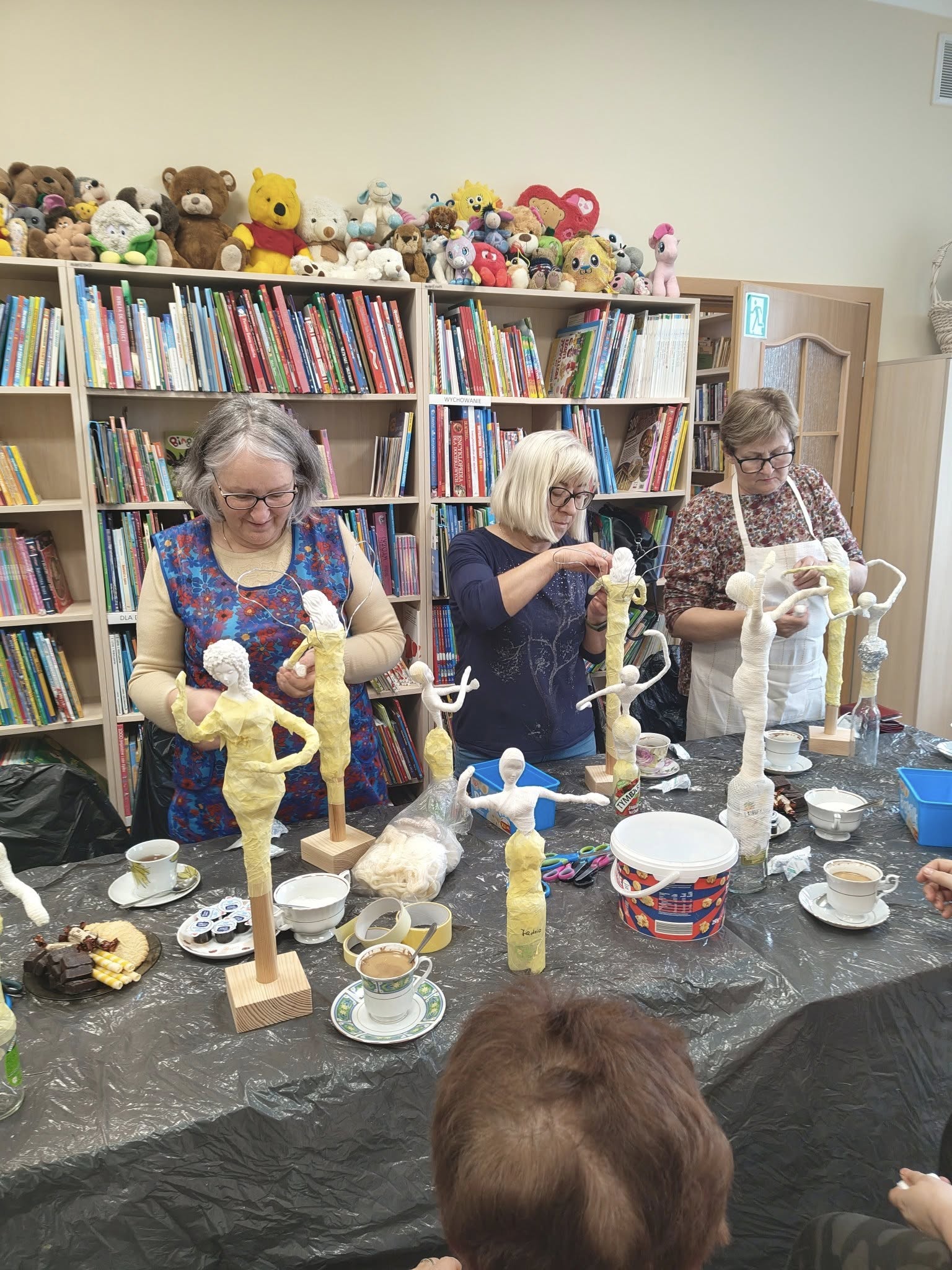 Ostatnie spotkanie z masy Powertex było dla naszych seniorek na prawdę wymagające- pełne skupienia, pomysłów i dokładności. Tworzyłyśmy stroje dla dam i aniołów, następnie przyszła kolej na "brudną robotę". Maczanie materiałów i nadawanie im charakteru było nie lada sztuką. Efekty tej pracy już wkrótce będzie można podziwiać w naszej Bibliotece! Zapewniamy - będzie na co popatrzeć