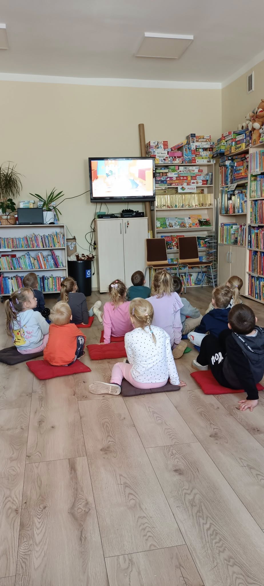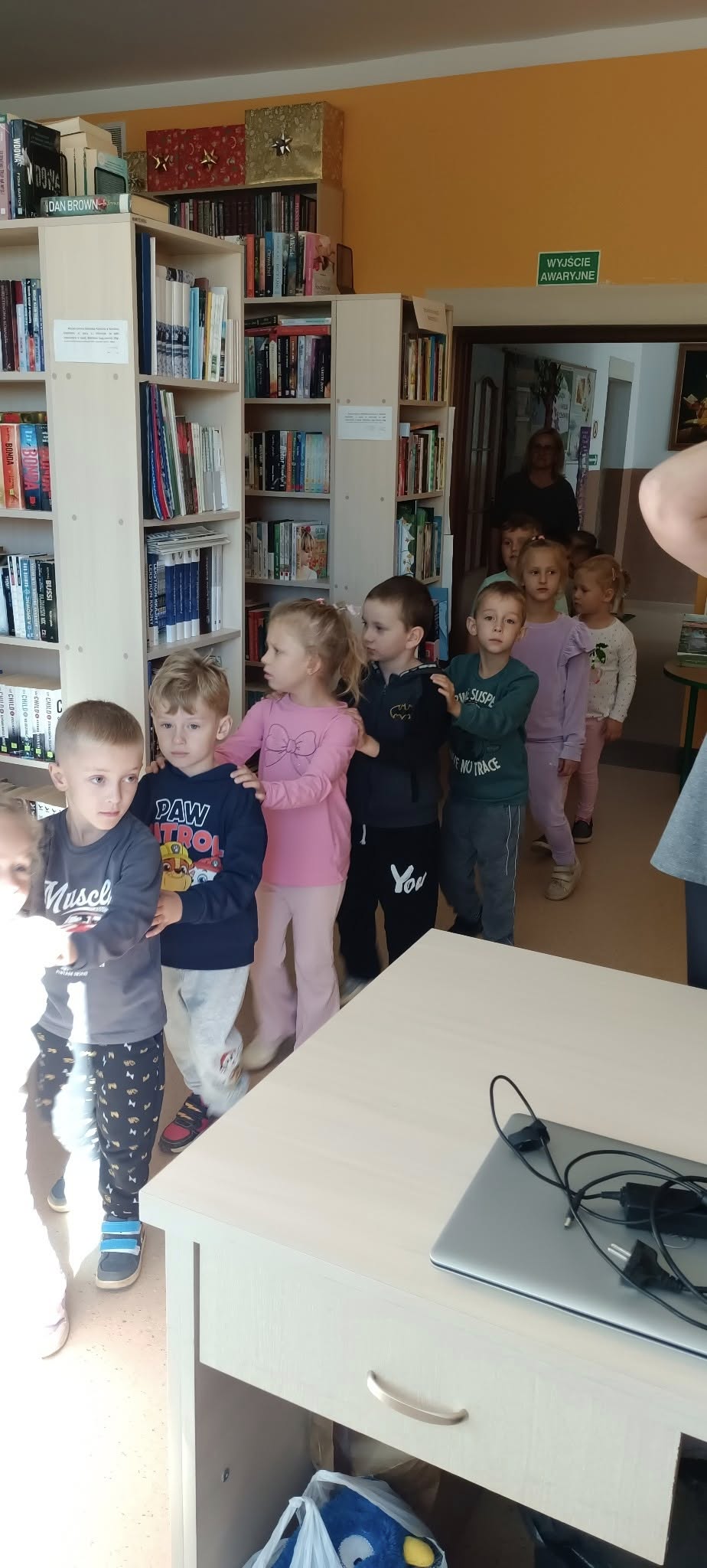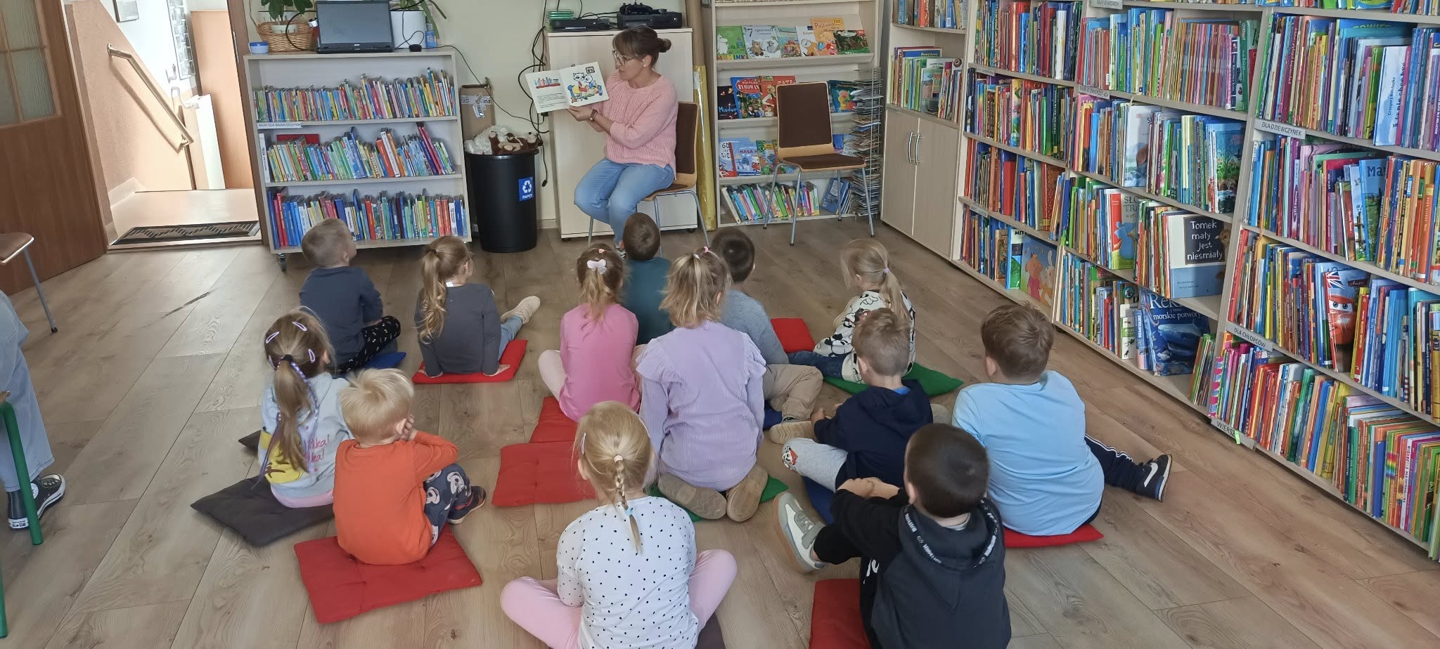 Dnia 26 września naszą bibliotekę odwiedziła grupa przedszkolna Tygryski  z Zespołu Szkolno - Przedszkolnego w Kamieniu Krajeńskim. Po krótkim przywitaniu i oprowadzeniu po najważniejszych zakątkach wypożyczalni, Izby Historyczno - Regionalnej mali goście wysłuchali czytanej na głos książeczki "Kicia Kocia w bibliotece". Lektura spotkała się z dużym entuzjazmem, dzieci chętnie odpowiadały na pytania, dzieliły się swoimi przemyśleniami i żywo reagowały na losy bohaterów. Po książeczce już był czas na to co przedszkolaki lubią najbardziej..... zabawę.
