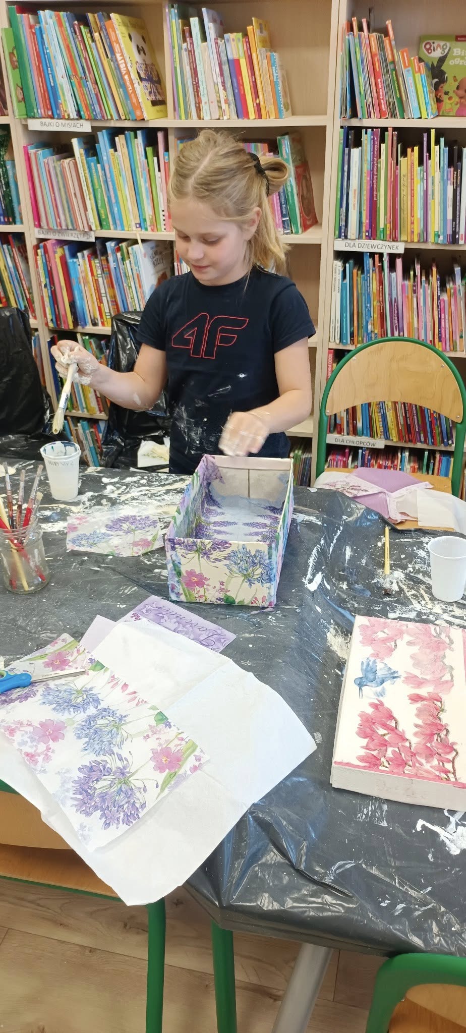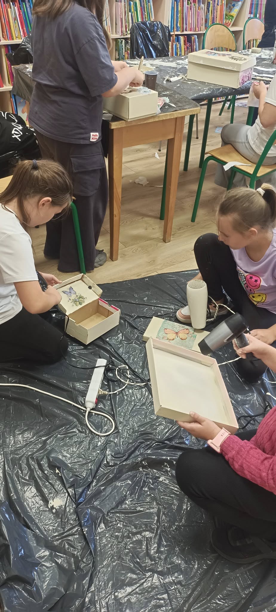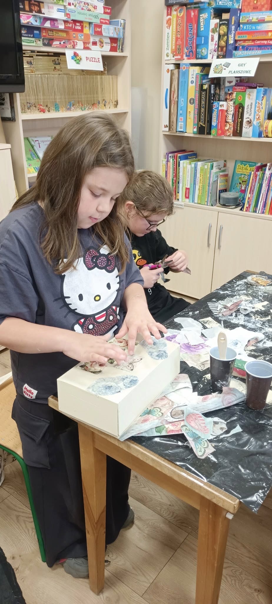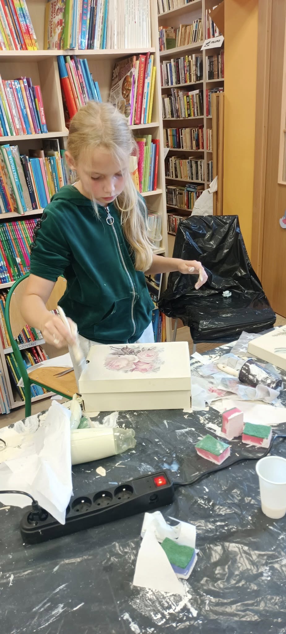 W tym tygodniu w naszej bibliotece odbyły się wyjątkowe zajęcia plastyczne. Dzieci z grup "Kreatywni do kwadratu" miały okazję poznać technikę decoupage i własnoręcznie ozdobić pudełka na skarby. Każde pudełko było jedyne w swoim rodzaju, pełne kolorów, wyobraźni i dziecięcej radości. Dziękujemy wszystkim uczestnikom za zaangażowanie i wspaniałą atmosferę.