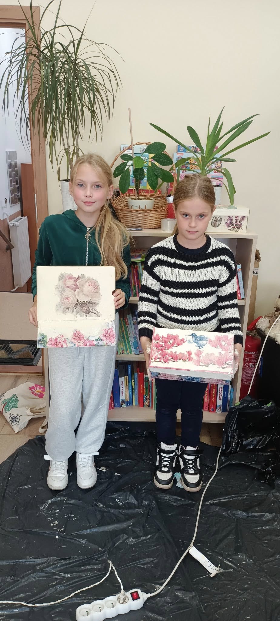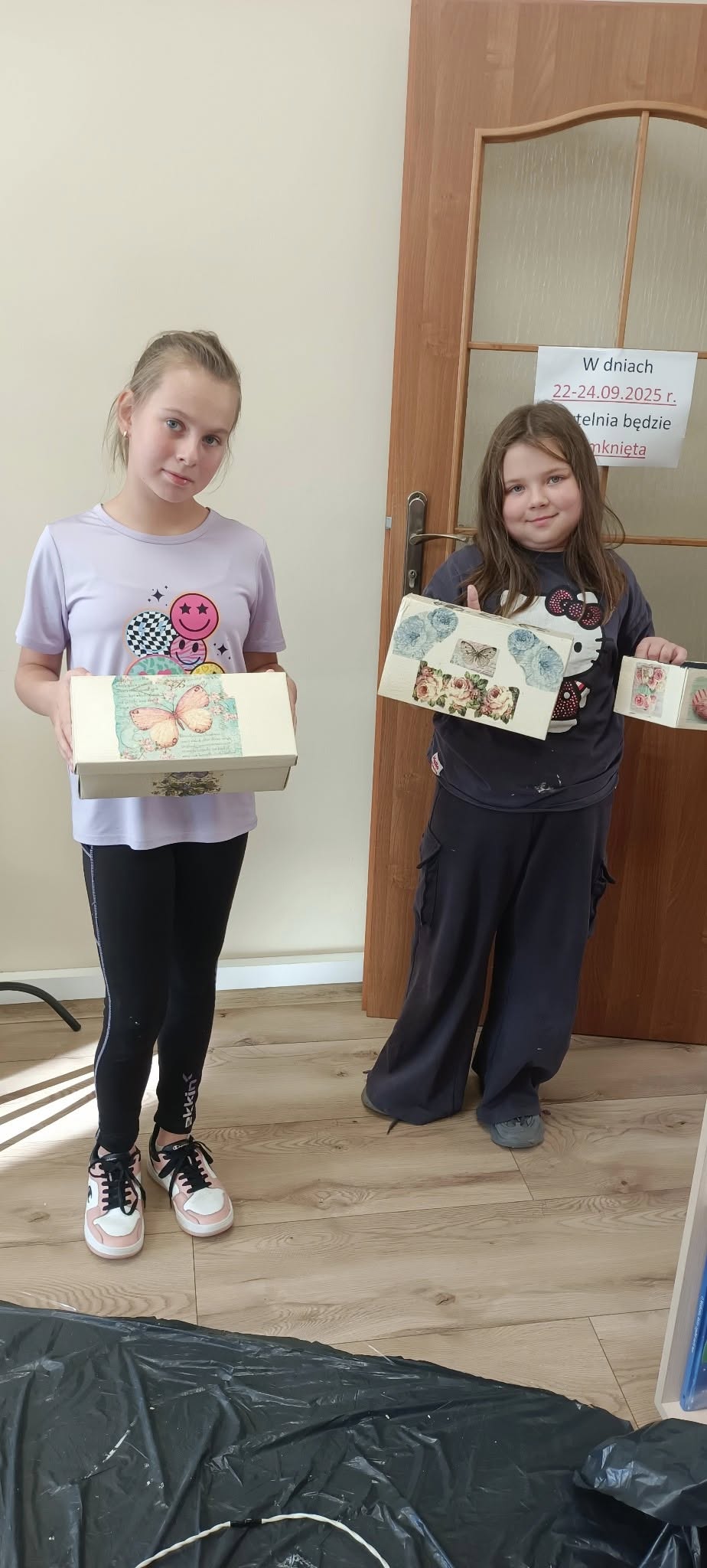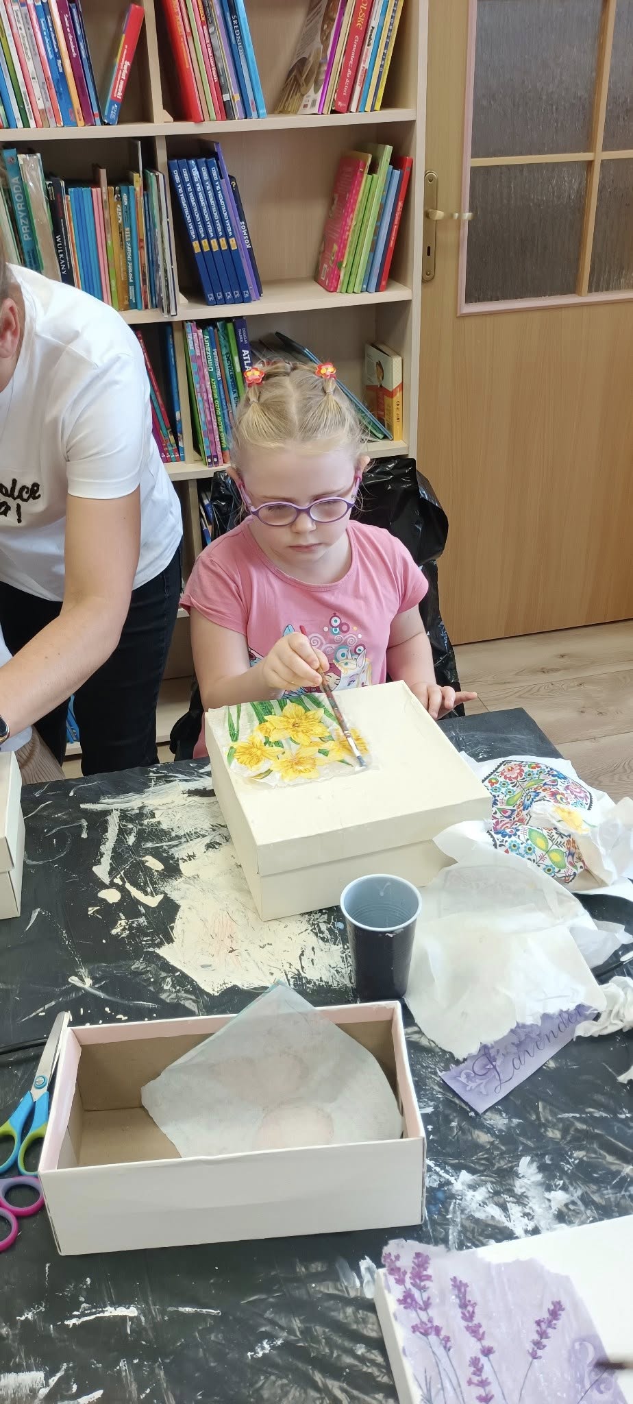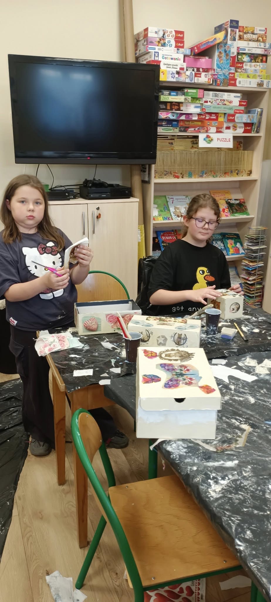 W tym tygodniu w naszej bibliotece odbyły się wyjątkowe zajęcia plastyczne. Dzieci z grup "Kreatywni do kwadratu" miały okazję poznać technikę decoupage i własnoręcznie ozdobić pudełka na skarby. Każde pudełko było jedyne w swoim rodzaju, pełne kolorów, wyobraźni i dziecięcej radości. Dziękujemy wszystkim uczestnikom za zaangażowanie i wspaniałą atmosferę.