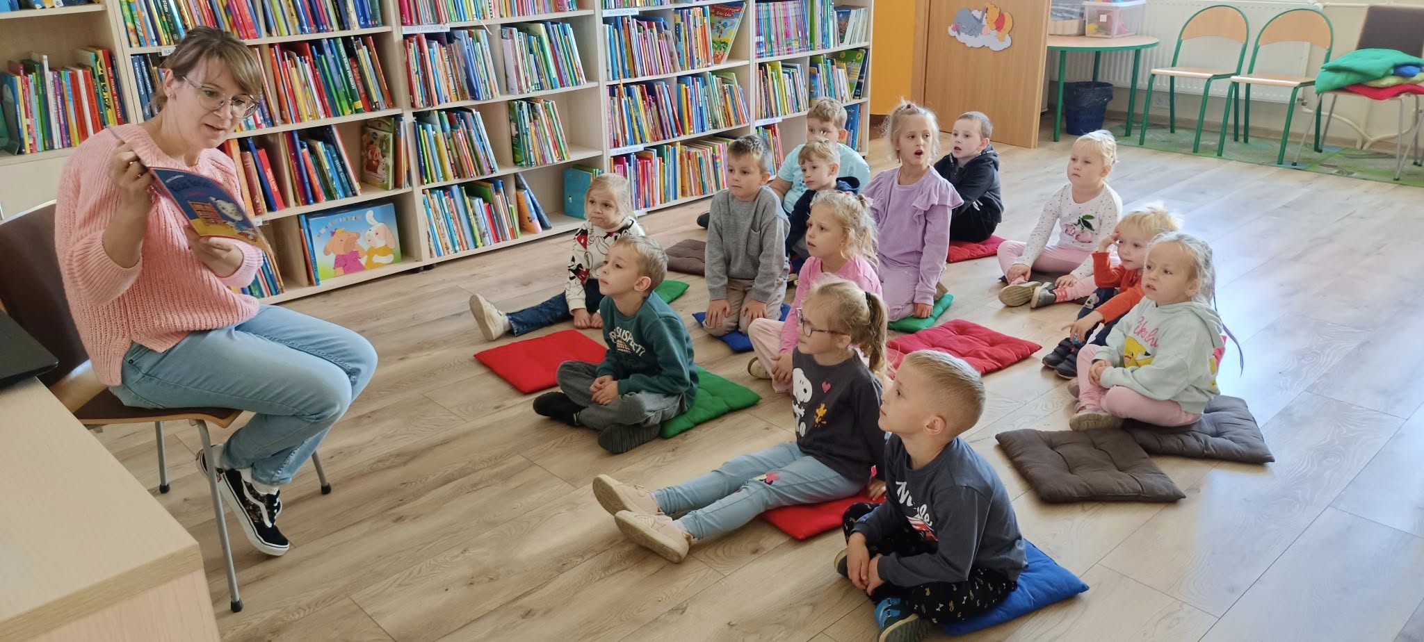 Dnia 26 września naszą bibliotekę odwiedziła grupa przedszkolna Tygryski  z Zespołu Szkolno - Przedszkolnego w Kamieniu Krajeńskim. Po krótkim przywitaniu i oprowadzeniu po najważniejszych zakątkach wypożyczalni, Izby Historyczno - Regionalnej mali goście wysłuchali czytanej na głos książeczki "Kicia Kocia w bibliotece". Lektura spotkała się z dużym entuzjazmem, dzieci chętnie odpowiadały na pytania, dzieliły się swoimi przemyśleniami i żywo reagowały na losy bohaterów. Po książeczce już był czas na to co przedszkolaki lubią najbardziej..... zabawę.